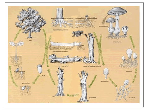 all starts when the spores are released from the gills (or which ever